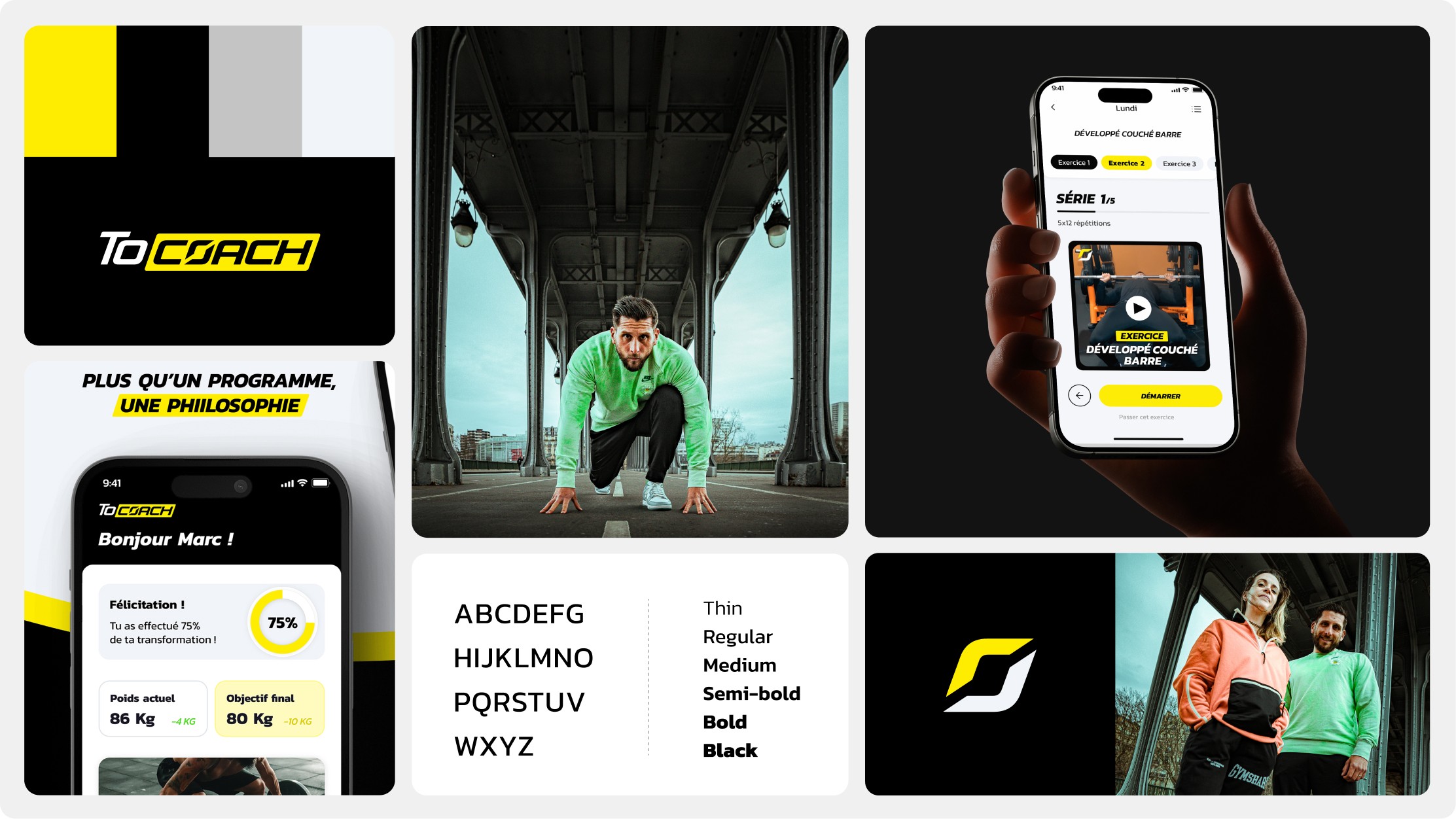 Une esthétique dynamique au service du résultat. Nous avons accompagné ToCoach dans le déploiement de son identité visuelle avec une direction graphique axée sur l'énergie, l'accessibilité et la performance. Dans un marché ultra-concurrentiel, notre objectif était de créer un univers visuel distinctif qui soit à la fois percutant pour les athlètes confirmés et rassurant pour un public plus large. Le résultat est une marque forte, lisible et résolument tournée vers l'action.