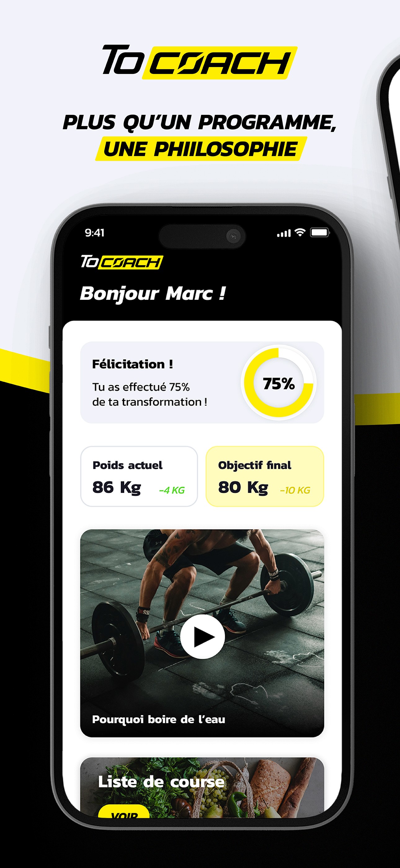 ToCoach est une application de coaching personnalisé qui fusionne programmes de fitness, suivi nutritionnel et objectifs hebdomadaires. Nous avons conçu le concept autour d'une mécanique de progression unique : chaque utilisateur avance à son propre rythme et débloque de nouveaux contenus en atteignant ses paliers. Cette approche ludique et gratifiante permet de transformer l'effort en une habitude durable et motivante.